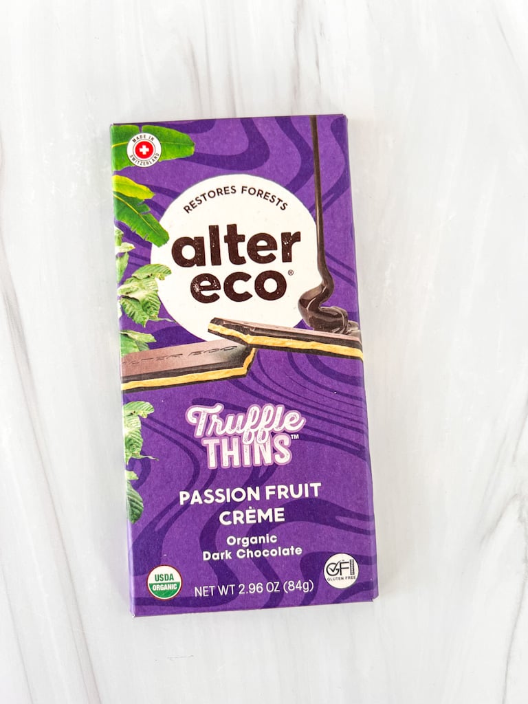 Alter Eco Fruit Crรจme Truffle Thins have a rich 60% cacao wrapped around a smooth passion fruit ganache for a bright, tangy finish. Sweet, silky, and perfectly indulgent, Alter Eco was made for savoring and sharing this month.