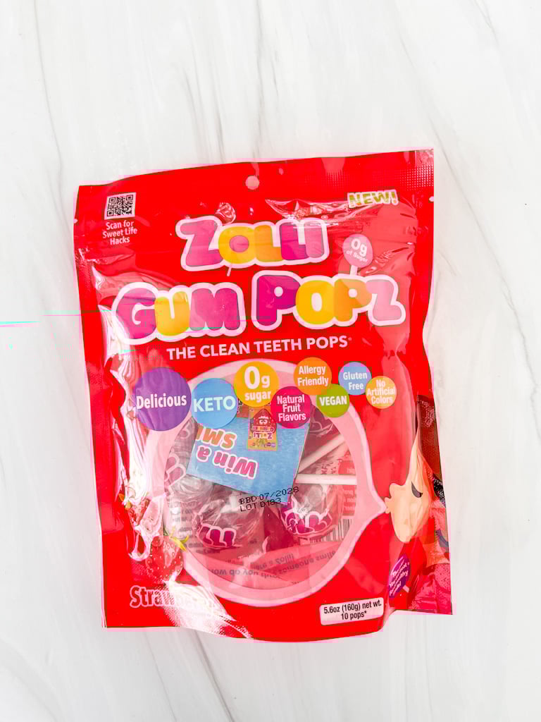 Zolli Candy has put a sugar-free twist on the beloved gum pop – and they’re the first to make sugar-free gum pops a thing! This sweet strawberry candy pop includes a surprise (and sugar-free) bubble-gum center. Zolli Popz are sugar-free, vegan, and gluten-free.